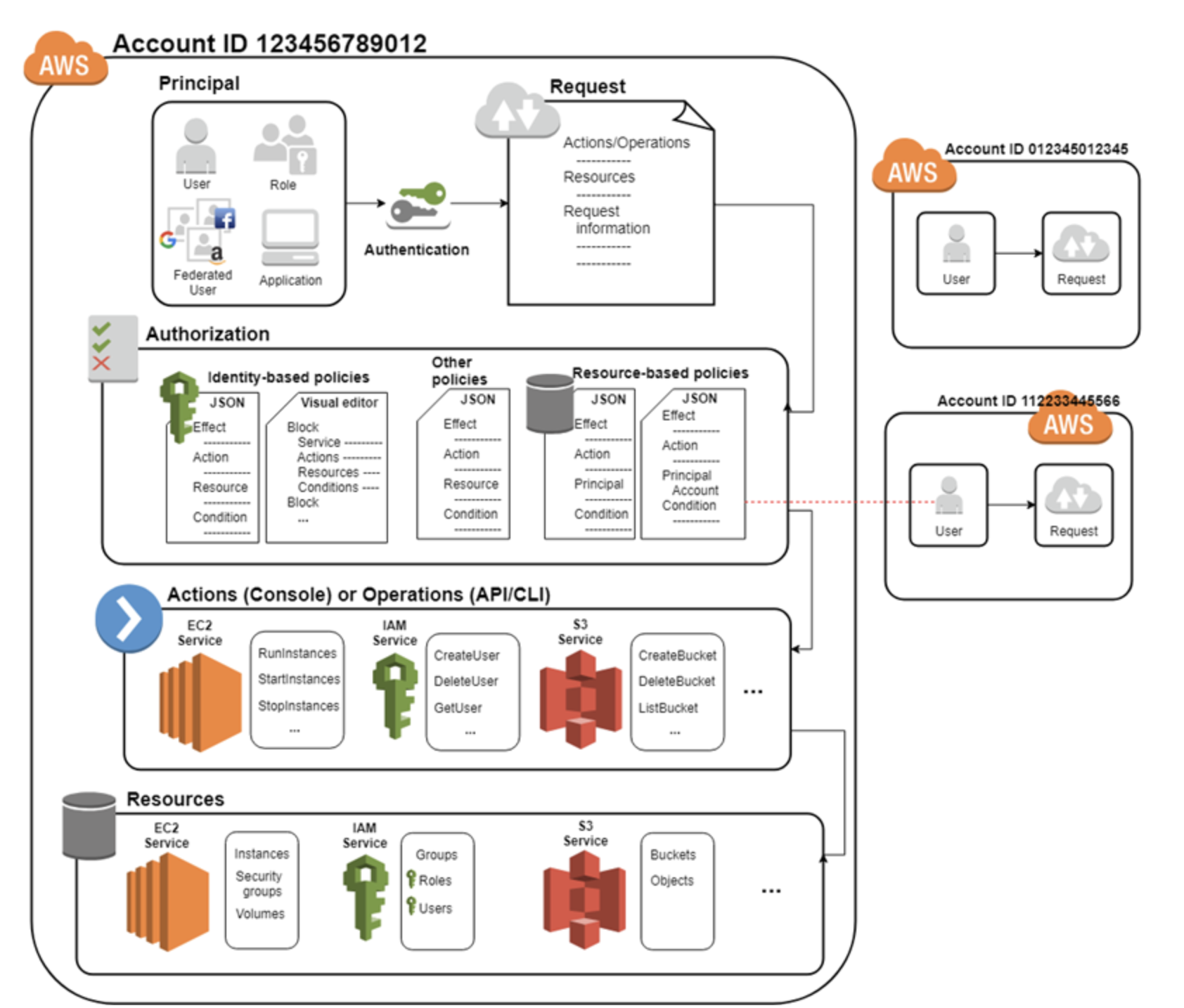 - user, federated user, IAM role이 포함되어 있다.